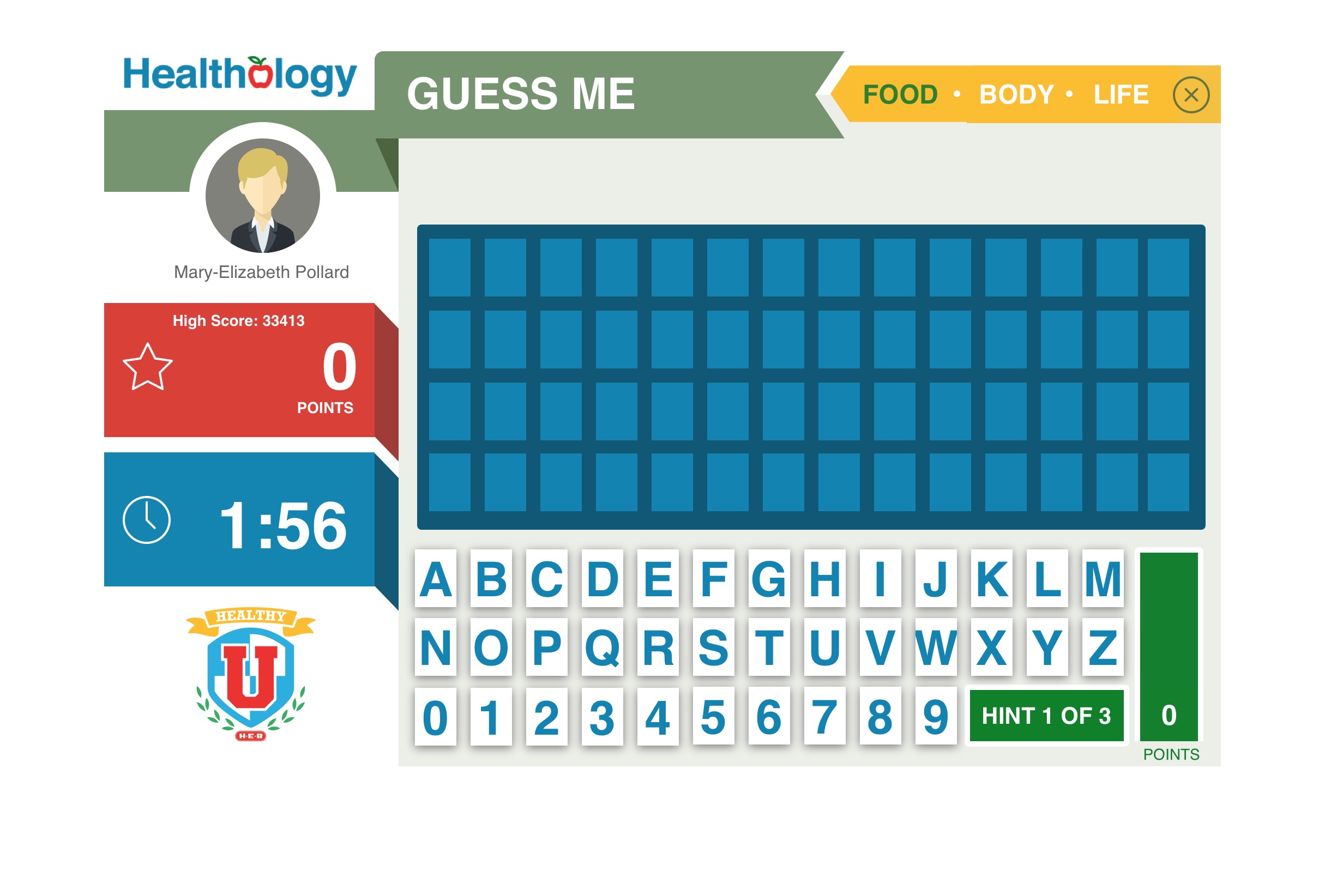 The website features several games that take just a few minutes each to play. Employees answer as many questions as possible before time runs out. Answering correctly adds points to the score and more time to the clock. Incorrect responses result in lost points. In case the user gets stumped, a “Hint” button is available.
