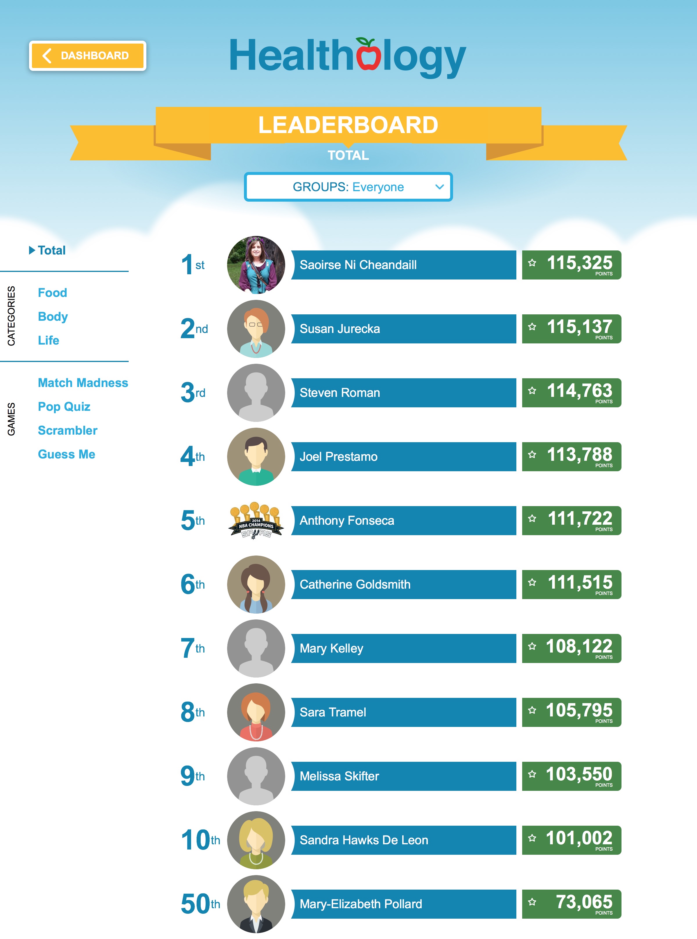 When the countdown clock runs out of time, employees can return to the dashboard to see how they performed against their coworkers. Not only does the dashboard rank overall scores, but it also breaks down scores and rankings by specific game and by content category. It’s an effective way to promote fun and healthy competition.